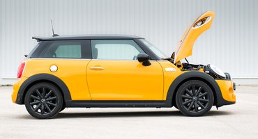 A új Minit a kényszer szülte, és talán minden eddiginél komolyabb terhet rótt a formatervezőkre. 2014-re annyit szigorodtak a biztonsági előírások, hogy olyan rövid orrocskával, mint a Mini II, nem lehetett teljesíteni. És bár az új Mini jelentősen megnőtt, és 12 centivel hosszabb lett, ami már félig-meddig kategóriaugrás, a növekmény nagyrészt az orrán jelentkezik. Szűk három centit nőtt a tengelytáv, tehát plusz 9 az orr. Pokorny Lia képes egész szexin hordani egy hasonló arányú toldatot a Társas játékban, úgyhogy egyrészt smink kérdése, hogy az autó ne viselkedjen szörnyszülöttként, másrészt el kell hinni magáról, hogy jó nő, hogy értékes ember, blablabla. Az új Mininek persze nem csak nagyobb az orra, de a géptető tövénél egy klasszikus kampelenfarkasos, pirotechnikával kiegészített szerkezet lövi fel a lemezt, hogy puhábbra érkezzen a gyalogos.