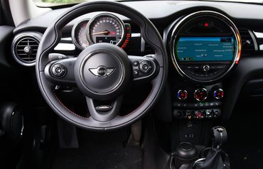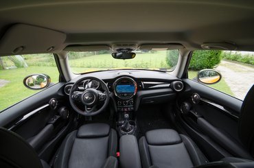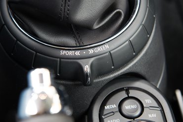 A kilométeróra bejött a kormány mögé, és kapott egy bal félkaréjt a fordulatszámmérőnek. Lehetett vita, és is szívesen veszekednék rajta, hogy inkább a nagy körműszer mutassa a fordulatszámot, amúgy Porsche-módra, de igazából mindegy. Újdonság még, hogy az amerikai vevők kívánságára a kormány mögötti indítógomb lejött a középkonzol közepére, nyalogatni valóan gusztusos kivitelben, szépen kivilágítva. Főleg félhomályban szép, és egy autóban elég gyakori a félhomály. Egyébként az összes új Mini így működik: a kulcsos indítás megszűnt.