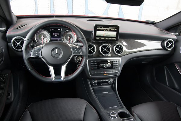 Pedig e hibáktól eltekintve a GLA több is lehetne, mint aminek kinéz, holott már a külseje is sokat ígér. Az utasterét ugyanazon a tiltott szerekkel felpörgetett designerpartin szülték, mint az általánosan kedvelt és a legújabb stílusirányzatot jelölő A és C osztályokét – sok karika, erős kézzel odarittyentett fémes elemek, az egész mögött pedig hideg, de nem rideg, inkább otthonos logika. Még a fedélzeti számítógép is zseniálisan könnyen kezelhető, pedig sokat tud. Minden vidám tehát, csak a kilátás klausztrofobikus – már az elöl ülőket is zavarja a sok, vastag oszlop, a kissé túl közel eső burkolatmennyiség és a kicsi ablakok, hátul pedig tényleg börtönszerű a hangulat.