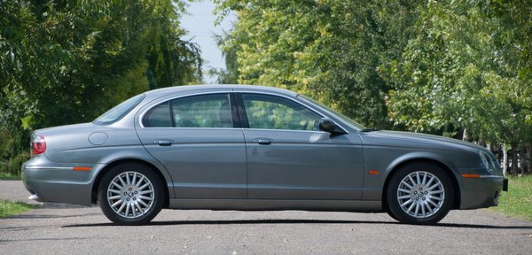 Az oldalnézet adja vissza leginkább a klasszikus sziluettet. A fejre állított csónakvonal, a lejtős csomagtér és a hosszú géptető ügyesen elcsalják a túlnyúlásokat, az egyedüli furcsaság az, hogy a 2909 mm-es tengelytáv ellenére (ami több még a Bangle-ötösénél is) az S-Type-ban hátul nincs több hely, mint egy hármas BMW-ben.