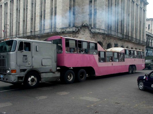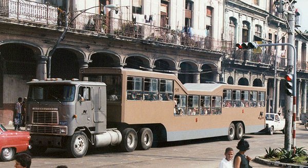 Kubában semmi sem az, aminek elsőre látszik. Akár hagyományos kamionnak is nézhetnénk az alacsonypadlós középrésszel (Low Entry) ellátott nyerges buszaikat. Az ilyen fajta buszok a nyolcvanas évek elején kezdtek elterjedni Havanna környékén. A fura kocsikat nagyon olcsón meg lehetett építeni, hiszen csak egy leselejtezett félpótkocsi kellett hozzá, aminek az alvázát meghosszabbították és arra került a felépítmény. Ehhez gyakorlatilag csak néhány zárt szelvény, vaslemez, oldalüvegek és ülések kellettek. Sokszor leselejtezett Ikarus-Girónokat használtak ezekhez az építésekhez. Úgy látszik, a helyi mérnökök jól dolgoztak, hiszen a képek alapján még az idősebb példányoknál sem látszik a vázszerkezet törése vagy elcsavarodása.