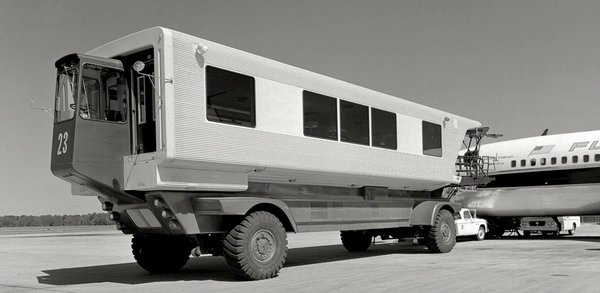 A második világháború elején készült ez az igazán furcsa busz. A fő szempont az volt a tervezésénél, hogy kocsi minél könnyebb legyen, és a városokba is be tudjon menni, így a nagy befogadóképesség mellett szempont volt a kicsi fordulókör is. Az 1942-ben elkészült prototípus 117 utas befogadására volt alkalmas, magnézium és alumínium rétegelt lemezekből készült a felépítménye. A fordulókört pedig egy érdekes megoldással kicsinyítették, úgy hogy a busz alsó része külön fordult a felépítményhez képest. Hogy a sofőr hol foglalt helyet, arról nem találtam semmiféle információt, csak találgatások vannak. Az egyik szerint az elforduló rész mögött ült a busz vezetője. Erre enged következtetni az, hogy a visszapillantó tükrök is hátrébb helyezkednek el. Egy másik verzió szerint a sofőrfülke a fix részhez csatlakozik, így a vezető egy kádban ül, ami kanyarodáskor nem fordul el.