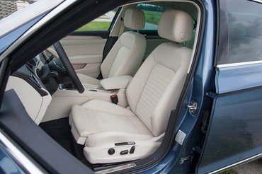 A Passatnál azt a nagy maszkot, azaz szájharmonikát viszontlátni a műszerfal széles befúvófelületét díszítő, vízszintes krómpálcáiban, amelyeket nem törnek meg az elállított szellőzőrostélyok, ugyanis azoknak nem az elülső élük mozog (amelyen a króm folytatódik), hanem a belső részük. És a lámpák dobozának furcsa szögei, nem tökéletesen párhuzamos oldalú paralelogrammái és aszimmetrikus trapézai szintén visszaköszönnek az árnyékolókban, a kilincseket körülvevő keretek formájában, a kapaszkodók dőlésében. Itt még a rendetlenséget is fokokra, percekre, másodpercekre kiszámították. German design at its best, ahogy látjuk – hideg, de elegáns és hosszú távra szól.