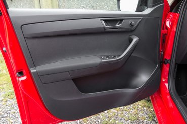 Meglepő, hogy a fullos Fabiában is csak zsebkendőnyi a puha felület az ajtópanelen: a könyöklőre jutott egy kis szivacs a szövet alá, a többi selyemfényű, recés plasztik. Valahol meg kellett húzni a vonalat, nehogy tényleg a Polo nyakára nőjön. Az anyagválasztás az, amivel a konszernen belül nagyon keményen lejjebb tolják mostanában a Škodát: ebben a remekül megrajzolt beltérben is csak a szemmel láthatóan olcsó műanyagok rondítanak az összképbe. És mondom, a tesztautóhoz képest a valóság csak rosszabb lesz.