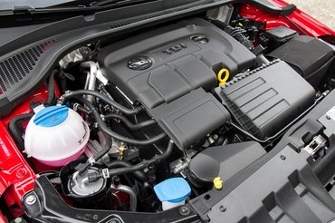 Amúgy az összes motor a Fabiában újabb fejlesztés, mint a Rapidban lévők – ez jó hír. Nemcsak azért, mert mind teljesíti az Euro 6-ot, ami már kötelező, hanem mert a benzinesek csúnya vezérműlánc-problémák után visszatértek a szíjas vezérléshez. Az 1,2-es a hatsebességes váltóval ha nem is mozgatja sportosan a Fabiát, azért finomabb a hangulata, mint a dízelé. Hidegen sincs olyan reszelős hangja, mint a régebbi TSI-knek, és selymesen, egyenletes húzással forog egészen tiltásig. Alacsony fordulaton viszont úgy érezni, mintha jobb erőben lenne a TDI-motor, hiába, a 175 newtonméter a rövidebb áttétel ellenére vékonyabb a dízel 230-énál.