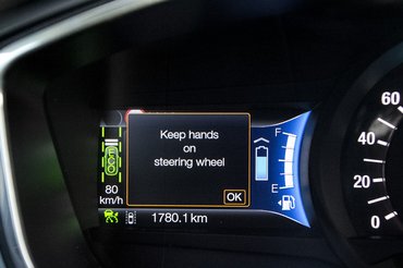 Ha a vezető elengedi a kormányt, azonnal észreveszi a rendszer, és szól: tessék fogni azt az átkozott volánt. És hiába próbáltam, nem tudtam átverni: ha csak kicsit is hozzáértem a kezemmel, mindegy, mennyire lágyan fogtam a karimát, már észrevette, hogy ott vagyok, nem aludtam el. Ha viszont kitántorgott a kocsi a felfestett sávból, megint rám pirított, hogy álljak félre, pihenjek, mert ennek így nem lesz jó vége, és visszaterelte az autót a helyére. Országúton, kanyarban viszont ne számítson senki a rendszerre, ha ív előtt bukik le az ember feje, túl gyorsan lépi át a terelővonalat az autó. Ilyenkor nem tud/akar beavatkozni a rendszer. Igen, nem engedik a programozók, hogy egy esetlegesen szándékos (de szabálytalan, mert irányjelzés nélkül végrehajtott) manőverbe beledumáljon a Fedélzeti Felügyelő, azt nem szeretnék a kuncsaftok.