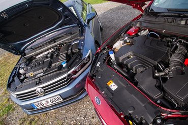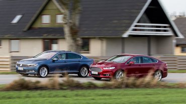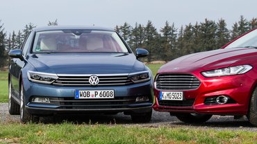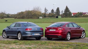 Tisztázzuk az alapokat. A Mondeót öt ajtóval és 180 lóerős, kétliteres, négyhengeres turbódízel motorral vezettük, a Passatot négy ajtóval (nincs belőle ferdehátú), 150 lóerős, kétliteres turbódízellel. A Mondeo 4,87 méter hosszú, a Passat 4,77. A Mondeo 1,91 méter széles, a Passat 1,83. A Mondeo 1,48 méter magas, a Passat 1,47. A Mondeo tengelytávja 2,85 méter, a Passaté 2,79.