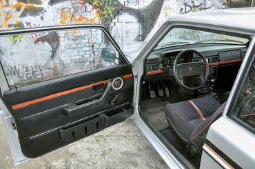 Még annak is szokatlan, aki jól ismeri a 200-as Volvókat, elsősorban a karosszérián feketén és narancssárgán ordító gyorsítócsíkok, a kerek és téglalap alakú első lámpák, a 200-as sorozaton elsőként itt alkalmazott fekete ablakkeretek és a hatalmas, üvegszálas alsó kötény miatt. Utóbbitól a kocsi úgy néz ki, mint valami hómentésre induló dízelmozdony a Thomas, a gőzmozdony sorozatból. Ha valami, hát a belső tér még a külsőnél is nagyobb átalakuláson ment át a szériakocsikhoz képest. Képről kicsit viccesen harsány, de élőben épp kellően hatásos a széles, narancssárga csík, amely körbefut az utaskabinon. Egyedi, narancssárga szélűek az ülések is, a műszeregységben apró fordulatszámmérő is helyet kapott, szériában adták a légkondicionálót, a központi zárat. A kocsi alapszolgáltatásai közé tartozott még a halogénizzós fényszóró, az overdrive-os (külön, a váltógomb tetején kapcsolható nyújtóáttétellel ellátott) váltó, a Pirelli P6-os gumik, az első és hátsó tárcsafékek, a modellspecifikus alukerekek, s lehetett tolótetőt, illetve fényszórótörlő, -mosó berendezést is rendelni. 1978-ban ez szenzációsan hosszú lista volt ám.