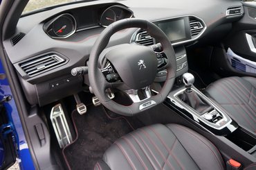 De ne rohanjunk előre, hiszen az ilyenkor szokásos kis dizájn-biszbaszok, amik meg kell hogy különböztessék a GT-t a többi 308-astól, azért itt is megtalálhatóak. Van két kipufogóvég, LED-technológiás fényszórók és futófényes, ledes indexek, erősebb kanyarstabilizátorok, keményebb rugók, picit leültetett futómű, de ami a legfontosabb: nagyobb fékek. Elöl 330-as, hátul 268 (ötajtós) illetve 290 (SW) milliméteres féktárcsák lassítanak egész meggyőzően. Leginkább azonban a francia versenyautókat idéző kék színnek örültem, ami kifejezetten jól áll a 308-asnak, pláne az elegánsabb és harmonikusabb SW mutat remekül ebben az új metál színben (és abban - a nagyobb tengelytávnak köszönhetően - van tisztes hely hátul). Amúgy nem volt nehéz dolguk a Peugeot-nál, mivel alapból egész jó forma a 308-as (és persze az utóbbi 20 év legjobb Peugeot-ja).
