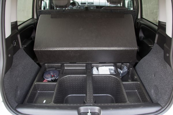 Kezdetben morogtam, hogy megint nincs zárható tároló, míg fel nem emeltem a padlóburkolatot a raktérben. Olyan rekeszdömpinget találtam, hogy még egy kisebb bevásárlást is bele tudtam suvasztani. Ezt más kisáruszállító gyártók is átvehetnék. A padlólapot pakoláskor egy kampó tartja az utastér rácsán, ami jó ötlet, kivéve, hogy olyan mélyen kell behajolni a be- és kiakasztáshoz, hogy garantáltan letakarítjuk a kocsi lökhárítóját a nadrágunkkal.