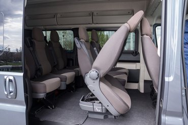 Bár a kategória legkényelmesebbjei a személyenként dönthető, karfás ülések, de ha rendezkedni kell, esetleg több raktér, akkor nem nagyon tudjuk kiszedni, legfeljebb a támlát dönteni. Ha kiszedhetőt akarunk, a Combinato névre hallgató felszereltséget kell választanunk, amiben kiemelhető sorok vannak. Létezik még jobb megoldás, Flex Floor-nak hívják, síneken mozgathatók az ülések, akár a Multivan-ben, ezt nálunk csak külön igényre lehet megrendelni, így nem is szerepel az árlistában. A németeknél igen, az azt tartalmazó Modular 2000 euróval drágább.