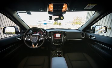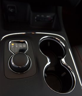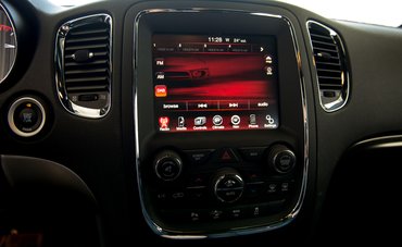A kezelőszervek abszolút az euró-élmezőnyt hozzák, mint például a virtuális műszerfal, kellemes dizájnnal, vagy a karmentes váltókar, ami egy korong, mint a Range Rover Evoque-ban, vagy a Jaguar XF-ben. Mert ugye, tényleg, minek foglalni a helyet karokkal, tök feleslegesen? Aux, USB és SD-kártya-csatlakozók, pohártartók, és középen egy nagy (8,4 col=21 centi) érintőképernyő. Meg egy nagy képernyőkikapcsoló gomb – az amerikaiak a nyugati félteke japánjai, mert az ember azonnal otthon van a Durangóban, és nem érzi magát hosszú idiótának valami tök egyszerű funkciót keresve, mint nem egy európai autóban. És akkor még nem is feltétlenül a franciákra gondolok.