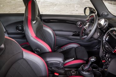 Ha már a sok levegőbeömlőnél tartunk, meg kell említeni, hogy egy kivétellel egyik sem öncélú, hiszen az eddigi 1.6 literes turbómotort lecserélték arra a kétltieres turbóra, amelyik már bizonyított a kettes BMW-ben, a megnövekedett levegőigény pedig hozta magával az agresszív formájú lökhárítót, plusz a 330 milliméteres tárcsával, négydugattyús Brembo-nyereggel szerelt fékrendszernek is kell a hűtés. A dobbetéteken látszik is, hol kapják a hideget, és ha ebből eddig nem lett volna világos, akkor mondom: műszaki oldalát tekintve a JCW szinte tökéletes, és nagyon-nagyon hegyes egy dög.