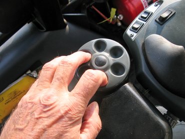 Mi is hiányzik? Ja persze, a volán. Helyette jobb kézre esik egy nagy, vízszintes billenőkapcsoló, balra pedig egy kis tárcsa, kerek mélyedésekkel az ujjaknak. Uramatyám, mi lesz ebből, hiszen széles ugyan a Prédikálószék meredek hegyoldalában a feltáróút, de a Buffalo is: három méteres. Hossza a tíz métert közelíti, magassága a négyet. Óvatosan adok egy kis gázt, lágyan elindulunk. Előbb a bal oldali tárcsával kormányozgatok, nagyon érzékenyen és finoman reagál, de Attila szól, hogy vonuláskor használjam a másikat. Az már egész más, eleinte némiképp szögletesek az íveim, de hamar bele lehet tanulni. Na, akkor most gyerünk vissza!