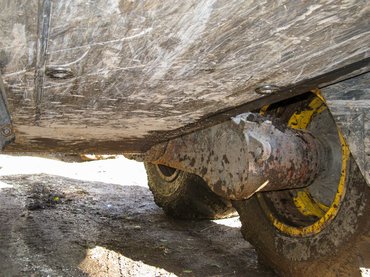Ez persze csalóka, mondja Attila, aki 12 évnyi gyakorlatra tekinthet vissza. Meredek, síkos terepen lecsúszhat lejtőirányba a hátsó rész, és noha egyenesen felmenne egy meredek sípályán a Buffalo, keresztirányban haladva már vigyázni kell, mert felborulhat. Szóval itt is igaz, ami a terepjárókra: együtt számítanak a gép, az ember és a gumik képességei. Ami az utóbbiakat illeti, nemsokára felszerelik rájuk a láncokat: elöl kerekenként külön, hátul két kerékre közösen, lánctalp-szerűen. Most néha küszködünk az esőzések után síkos talajjal, például egy helyen nem is tudunk oldalra kikanyarodni egy mélyen kijárt útról, mert elkapar a nyolc kerék, némi kerülőt kell tenni.