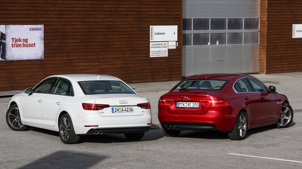 Bár a két itt szereplő autó szigorúan véve nem egymás konkurense, hiszen a Jaguar XE-t kétliteres, 163 lóerős, négyhengeres, míg az Audi A4-est háromliteres, 218 lóerős, hathengeres turbódízellel tudtuk megkaparintani a dán Év Autója-vezetésen, a méretük, rangjuk hajszálpontosan ugyanabba a dobozba cuppantja őket. S a rettentő könnyűnek ígért Jaguar simán be tudja hozni legalább a felét annak a 25 százaléknyi teljesítmény-különbségnek csak a kilókon – a Jaguarnak ebben a verzióban elvileg csak 1435 van belőle, az Audinak viszont 1615. Meg aztán: Jaguarból akkor se lenne sima járású hathengeres dízel, ha akarnánk, csak négy hengerrel készül. De vessenek magukra ők. Ha tehát nem is teljesen kiegyensúlyozott az összevetés, a megfelelő helyeken, enyhén hunyorítva szépen egyensúlyba kerülhet még az a mérleg.