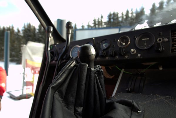 A váltó kapcsolási érzete egészen elképesztő. Sosem vezettem Avia kisteherautót, de ez a felújított négygangos olyan rövid utakon jár, mint egy Honda S2000-é és olyan mechanikus klattyanással esik a helyére, mintha Enzo Ferrari csettintett volna egyet. A Lavina nem kérdez, megindul. Ha odalépünk neki, akkor magasra dobja maga mögött a havat, hátul egymásra zuhannak az emberek, de a lökéshullám csak egyszeri, az is inkább a fenomenális tapadásból adódik, amikor a 15 centi magas acélkések belemarnak a fagyott hóba.