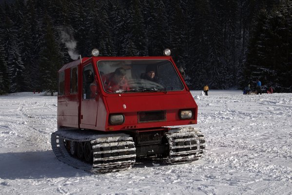 Az első két percben az autóhoz szokott ember rémülten markolássza a kormány helyét, aztán hamar megtanul ülni a ratrakban. Előredőlt felsőtesttel markolom a két kart, a gázt a pedállal adom, ha teljesen hátradőlnék és automatikusan húznám a karokat magammal, akkor szinte azonnal megállunk, ha elengedem a gázt, azonnal megállunk. Magyarán megállni sokkal könnyebb a Lavinával, mint mozogni.