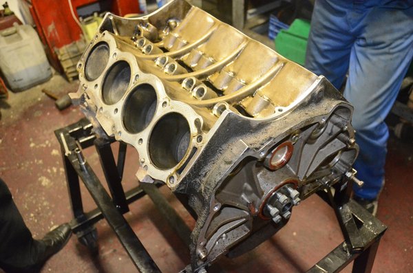 Azóta szétszedték. Kitalálták: minden irányban produkált meglepetéseket a kocsi. A karosszéria például Valkerék szerint sokkal rosszabbnak bizonyult, mint amit vártak: a doblemezeken lyukak, a küszöbvégeknél lyukak, igaz, a nagy része még így is ép volt. Szerintem nem is olyan pocsék. A motor viszont épp a másik véglet: a sokat látott hengereken nemhogy váll nem volt, de még a gyári honolási nyomok is látszottak – ez azért nem rossz. Mivel a motorikus alkatrészek olcsók, ezért ennek ellenére a teljes generál mellett döntöttek – sokat fut majd még ez, trélerezni is fog, jobb a teljes biztonság...
