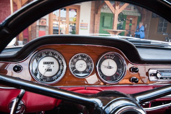 Ó, és nagyon finom a váltó is. Az az igazi, keményen megvezetett kulissza, amit annyira lehet szeretni ezeknél a régi, hátsókerekes gépeknél. Hosszú úton mozog a bot, de kis erővel. Nem olyan a kapcsolási érzet, mint a hetvenes, nyolcvanas évek rövid botos BMW-iben, hanem inkább mint a modern pickupokban. A kormány szervó nélküli, globoid csigás, de egész precíz, és ha már egyszer gurulunk, könnyű is. A kor színvonalához képest nyilván fenomenális volt, de még mai szemmel nézve is tűrhető a fék, az elöl tárcsás, hátul dobos rendszer egyenesen lassít, meglehetős intenzitással, csak a nyomáspontja puhább a mostaniaknál. Összeszedettebb és gördülékenyebb, mint amire számítottam, ha pedig hozzáveszem a gyönyörű műszerfalat, a káprázatos, suhogó-dübörgő hangélményt, azt kell mondanom: oldtimeres nirvána.
