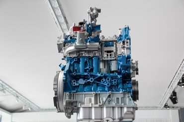 Mégis, mit tud ez a kétliteres turbódízel? Nulláról kezdték el tervezni, tehát szinte bármit megtehettek a mérnökök. Ez például azt jelentette, hogy 10 milliméterrel eltolhatták a hajtókarokat. Ez annyira érdekesen és szokatlanul hangzott, hogy többen is ott álltunk a felszeletelt motormetszet mellett, és nézegettük, hogy mégis, hogyan tolták el a hajtókarokat? És egyáltalán miért jó az? És miért nem látszik? Aztán kiderült, csak a magyar sajtóanyagban volt egy mondat, ami igazából azt akarta jelenteni, hogy a főtengelyt (és nem a hajtókarokat) tolták el a blokk közepéhez (még inkább a hengerek középvonalához) képest egy centivel, így a dugattyúk palástjára kisebb nyomóerő hat, mikor a munkaütem zajlik a hengerben. Ez a dugattyú, a gyűrűk és a hengerpalást kopása szempontjából is előnyös, és mivel így kisebb a súrlódás, jobb lehet a fogyasztás is -nem ez az első ilyen motor, mások is ismerik és évek óta alkalmazzák a trükköt. Aztán moduláris vezérműtengelyeket használnak (igen, kettő is van, ugyanis 16 szelepes a hengerfej), minimalizálták a főtengelycsapágyak méretét, ezzel is a belső súrlódást csökkentve, illetve, hasonlóan a kis benzines EcoBoosthoz, itt is olajban forog a vezérműszíj. Ezek így, együtt valami 13 százalékos fogyasztáscsökkenést jelentenek. A sok súrlódáscsökkentésnek (is) köszönhetően egészen elkepesztő, akár 60 ezer kilométeres karbantartási (értsd olajcsere) intervallummal lehet számolni. Ez ugye pontosan az, amivel kapcsolatban egyrészről érdemes kiemelni az "akár" szót, ami az esetek nagy részében azt jelenti, hogy biztos van olyan, hogy sikerül, de azért ne reménykedj benne, hogy összejön. Aztán az is az igazsághoz tartozik, hogy az ilyen nagyon hosszú olajcsere-periódusokkal kapcsolatban eddig általában szkeptikus véleményeket hallottunk, aki igazán hosszú távra tervez, az nem a katalógus adatok alapján cserélteti a motorolajat.