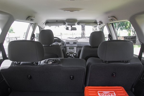Leghátulra alsó tagozatos gyerekek simán elférnek, és még valamennyi csomagtér is marad a hátuk mögött. A beszállónyílás hatalmas, hiszen az egész középső sor előrebucskázik egy karhúzás után, de a csomagtér rakodópereme elég magasra kerül. Az alvázas építés amúgy is tekintélyesen megemeli, plusz ugye, a padlóba fordul a harmadik üléssor is. A retesszel csukható tárolódoboz viszont remek ötlet, nem is csúszkál benne semmi, hiszen gumibéléses. Pár egymásra pakolt sporttáska vagy állított bőrönd elfér ide, de amint lehajtjuk a harmadik üléssort, hirtelen lesz egy tökéletes hasáb keresztmetszetű, 935 literes barlangunk, aztán ha tényleg méretes cuccot vinnénk, és lehajtjuk a második sort is, a sík padló 1524 literes térfogatot ad (ablakperemig). Itt gond nélkül elalszik két felnőtt, egy-egy horgásztúránál megspóroljuk a sátrat.