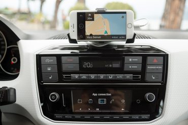 Azért viszont jár a piros pont, hogy az USB-csatlakozót nem valahova a középkonzol aljára, hanem a telefontartó konzol mögé rakták, így nem akadunk bele a vezetékbe váltás, vagy a kapcsolókkal való matatás közben. Ha csatlakoztattuk a telefont, érdemes az Uphoz tartozó applikációt is letölteni, ez kiterjeszti a lehetőségeket. Kapunk navigációt, multimédia-vezérlést és még pár más funkciót. Ilyenkor a telefon bluetooth-on és kábelen is csatlakozik az autóhoz, ami érdekes anomáliákhoz vezet: lehúztam a tesztautóhoz kapott iPhone 6-ot, és rádugtam a sajátom, hogy arról szóljon a zene, amitől a zene halkan szólt, de amikor a GPS utasítást adott volna, akkor a szöveg idejére fájdalomküszöbig hangosította, majd újra alig hallottuk. A szándék gondolom az volt, hogy pont fordítva legyen, vagyis amikor jön a következő kihajtón hajts ki jobbra, a zene halkuljon el.