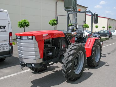 Ennyit az előzményekről. A négyhengeres, közvetlen befecskendezésű, 2,4 literes, 50 lóerős motort a japán Kubota szállítja. Az erőátvitel tányérrugós tengelykapcsolóból, kétszer négyfokozatú sebességváltóból és irányváltóból áll, amely egybe van építve a hátsó differenciállal és az összkerékhajtás kiágazásával, mindezt az első és a hátsó híddal együtt az olasz Carraro Drive Tech készíti. A kettő közé öntött acél darázsderék kerül majd, ezt a prototípuson még kazánlemezből hegesztett szekrény helyettesíti.