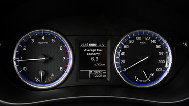 Mondjuk van még mit reszelni az ergonómián, Különösen kellemetlen például, hogy a két analóg műszer közti kis kijelző tartalma, amelyen menet közben figyelhetnénk például a fogyasztást, a műszeregység sarkaiból kiálló, a fekete háttér előtt szinte láthatatlan pöckökkel állítható, a kormánykarima mögé nyúlkálva, miközben a kormányon és a kormány mellett is van egy rakás könnyen elérhető gomb. De másutt is tetten érhető, hogy a Suzuki fedélzeti rendszere még mindig több, egymásról mit sem tudó egységből áll. A tükrök például behajthatók, de a funkció nem tehető automatikussá, mint manapság a legtöbb típuson, mert a tükör-elektronika és az érintőképernyős felület közt valószínűleg semmilyen kapcsolat nincs.