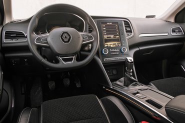 Műszakilag a Renault Talisman rokona, kvázi annak a visszafejlesztésével született, semmint a Clio felhizlalásával. Bennem már kialakult egy kép, hogy egy autó belső méretei alapján mekkora lehet kívülről, de ez a Mégane sokkal szélesebb annál, mint érzésre hittem. Picit meg is padkáztam az első parkoláskor, gondolom, a gigantikus nyomtáv is a Talisman-rokonság gyümölcse. Persze aztán megszokja az ember, bár a 11,3 méteres fordulókör már kényelmetlen a szűkebb parkolókban.