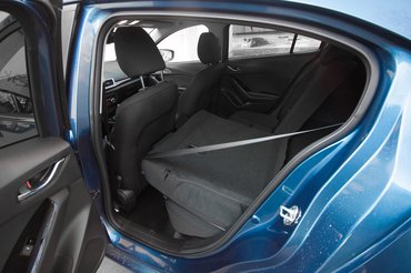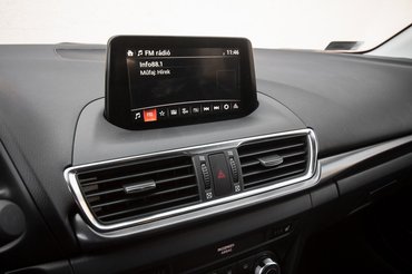 Persze nem prémium autóról van szó - hiszen egy ennél szerényebben extrázott G120-as Mazda 3 már 5,7 millióért megkapható, a másfeles, csupán 100 lóerős kivitel pedig 5,4-ért -, tehát tetten érni itt-ott a spórolás nyomát. Hátul már kemény az ajtókárpit, a központi kijelző nem HD-s felbontású (ettől még a tolatókamera képe egész jó), ha pedig ledöntjük az üléseket, ott a szövet eldolgozása tisztességes, de elég darabos. Most tényleg – számít ez? Valaki tényleg azzal indítja a zúzós bulit szombat este a pubban, hogy első mozzanatként a bal hátsó üléskárpit öltéseit mutogatja majd a haveroknak? Nem tudom elképzelni.
