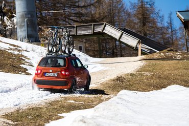Befordult a parkolóba egy fültágítós, kakastaréj-frizurás, két méter magas osztrák suhanc, a hóban keresztbe rakta a Can-Am Commander ATV-t, aztán intett, hogy kövessük a hegyre. Olyan abszurd volt a jelenet, hogy eszünkbe sem jutott bármit kérdezni, a traktorgumis gép után iramodtunk az egyre csak szakadó hóban. Sár, hó, murva és víz változatos elegyén próbáltam utolérni emberünket, de az Ignis ment, csak a tengelyközépig érő árkokban döccent meg. A hóhatárt elérve nem jósoltunk neki sokat, de a 20 centi porhó sem volt akadály. Az új Suzuki lenne a tökéletes expedíciós autó?