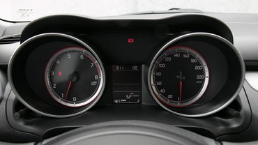 A beltér nem egy franciás ötletparádé, de a fehér betétek visznek bele egy kis életet, a műszeregységgel pedig engem simán megvettek. Nagy, ezüst keretes csövek végén számol a fordulatszámmérő és a kilométeróra is – ez a piros-szürke-ezüst összeállítás nálam hibátlan, sokkal jobban betalál, mint a virtuális műszerek. Ezt megfejelték egy lapított aljú kormánnyal – amin mondjuk nem értem az alsó rész műanyag betéteit –, mintha sunyi módon próbáltak volna spórolni a bőrrel.