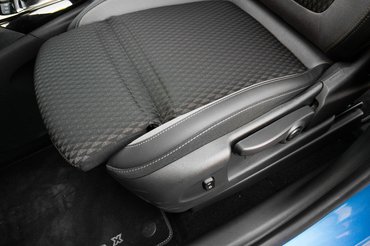 A tesztautókban elöl úgynevezett AGR sportülések voltak, ezeknek kihúzható combtámaszuk (!) is van, mint egy BMW-sportülésnek. Az is szimpatikus, hogy az ülőlap szöge és az ülés magassága külön szabályozható, arról nem is beszélve, hogy van négy irányban állítható deréktámasz is, ezen még azt is lehet állítani, hogy milyen magasságban tartson, akár egy Audin. Egy dolgon azonban nem segít a szuper ortopéd ülés: keskeny, és mivel sportosra vették a figurát, az oldaltámasz nyomta a combomat. Azt hiszem, ide kisebb, főleg női fenekeket álmodtak a tervezők.