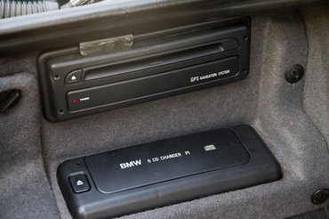 Ezentúl már csak a kor összes BMW-jét sújtó kiégő műszerfali pixelek kerülnek szóba, bár főleg egy ennyire komolyan felextrázott példányban annyi elektromos extra és segédberendezés van, hogy már csak a nagy számok törvénye miatt is beesik előbb-utóbb valami. Például a komfortülések háttámlája középen megtörhető, a hát vonalához állítható, természetesen elektromosan. Aztán ott a nagy board, ami anno még a földfelszíni TV-sugárzást is megjelenítette. Az antennája máig megvan a tetőn, adás nincs, amit foghatna, viszont a navigáció is működik, DVD-ről kapja a biteket, a csomagtartóban van a meghajtója, a hatlemezes CD tár mellett. Meghökkentő, hogy egy ennyire frissnek, egyben lévőnek ható autó mellett így megy el a technikai fejlődés, csupa avítt formátum és adathordozó.