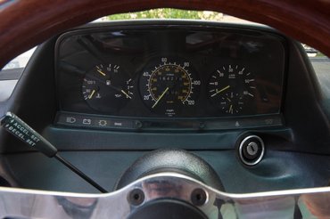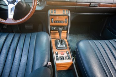 Odabent fuldokolni lehet az extrákban. Fordulatszámmérős a műszerfal, ami dízel-Mercedes vonalon ritkább, mint a tiszta kezű politikus. Nem a szokásos MB-Tex szellőzőlyukas műbőr borítja az üléseket, hanem valami sokkal puhább, vékonyabb, bőrszerűbb műbőr, ami ráadásul üvöltő kék – ennél jobban csak egy Subaru XT-vel lehet megidézni a 80-as évek eleji über-coolt. Van még tempomatunk a kormányrúdon (most épp nem működik), a középkonzolon a fűtésszervek pedig annyira máshogy néznek ki a megszokott 123-as tekerőkhöz képest, mintha egy másik márka autójában ülnénk – csak a korszak stimmel. A hőfokszabályzós klímaberendezésen végigpásztázó tekintet meg-megakad a beazonosíthatatlan funkciójú, értelmezhetetlen piktogramokkal jelölt nyomógombokon – ezek nyilván a légáram útját irányítják. Akad még antennánk, tetőnk és négy ablakunk is, amit mind motor mozgat, s a féltve eltett gyári Becker helyén egy modern, cédéképes fejegység lakik. „Sokat járok autópályán a kocsival, van egy elég nagy cédégyűjteményem, a kettő magyarázat a modern rádióra” - szabadkozik Márk. Látják, ő legalább használja a kocsit.