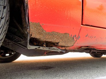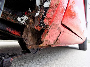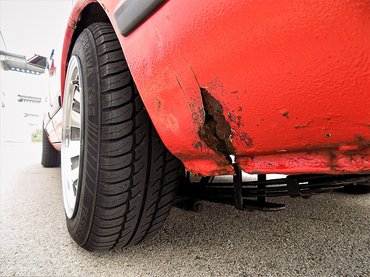 Küszöbök ugyanis voltak, de már nincsenek. A bal első sárvédő alja olyan, mintha egy vashiányos óriás harapott volna ki belőle egy dühödtet. A bal hátulja is sírva néz ránk, hogy tegyünk már valamit. A csomagtartó ajtaja is kívánja a törődést. A padló nem tűnik vészesnek így elsőre, de megnézném az alvázvédő eltávolítása után, mert amelyik autónak ennyire jól áll a távolság, az tartogathat még bőven meglepetéseket. Látszik, hogy az oxigénen kívül nem kerülte el a hazai kisipar sem, sajnos a vékony pénztárca pengeként hasogatja miszlikre az öreg autó karosszériáját. Kapott ez már telifényt, valószínűleg nem is egyszer, van rajta olyan felület, ahol geológusként lehet nyomon követni a rétegek képződését.