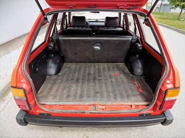 Elöl jól el lehet férni, pláne a külső méreteihez viszonyítva, hátul már lehetnek problémák, ha valaki túlságosan szereti a bigmeket, hisz az autó hossza 3850 mm, alig másfél méter széles, tengelytávja 2324 mm. A csomagtartó ajtaját két gázrugó tartotta valaha, de lelkük már régóta gázrugóskodhat az örök gázrugómezőkön, és a kitámasztást nem seprűnyél, hanem egy méretre vágott alumínium profil végzi. Rögvest feltűnik bárkinek, hogy hiányzik a kalaptartó, nem venni észre elsőre, hogy hol vannak a bekötési pontjai, így azt is hihetné az ember, hogy gyárilag hiányzik. Képekben ugyan nem bővelkedik a világháló, de robbantott ábrákon láttam, hogy valaha volt. Mondjuk ezen a bolygón már biztos nincs, ez a csomagtér soha többé nem fog látni gyári példányt, de utólagost még lehet bele szerkeszteni egy szép vasárnap délutánon.