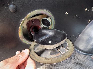Belül legalább ott van szépen a gyári szín. Egy paplan van tehát ráborítva kívülről, ami nem ápol, csak eltakar. A motorháztetőt kinyitva látszik, hogy a tornyokon is vastagon áll a gitt, ami már szanaszét is repedezett egy odvas lyuk körül. Nagyon remélem, hogy Robi kellően erős lesz a feladathoz és talál is olyan lakatost, aki szereti a munkáját. Vagy inkább szenvedélyesen imádja.