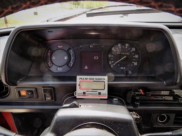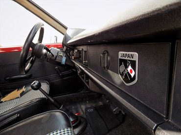 A beltér a külső kontrasztja. Az öreg japán autók belsői legendásan tartósak, itt is tulajdonképpen csak a vezetőülés fáradt már el ennyi utazás során, meg az anyósén van egy csikknyom, minden más kárpit remek állapotban van. A váltógomb évtizedekig a gyűrűk ura lehetett, erősen próbálhatott ilyen ékszereket elkoptatni, de ő vesztett. A műszerfal csodálatos állapotú, mintha sosem érte volna UV-fény, ezt nem is értem. Azt igen, hogy minden kapcsoló úgy kattan, mintha új lenne.