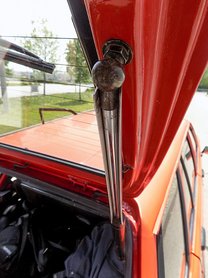 És cuki részletek vannak mindenhol, mint a pirinyó bajuszkapcsolók, a motorháztető meglepően nagyméretű nyitókarján lévő ábra, és az óra. Bizony, ekkor még nem álltak rendelkezésre kimeríthetetlen kvarcóra-készletek, és egy, az autóhoz méltó módon kocka alakú analóg óra ketyerészik a beltérben. Persze, hogy pontosan jár. Az utólagos fordulatszámmérő, amit a gyári hiányában beleapplikált a jelenlegi tulajdonos, nem illik ugyan a képbe, de annyi baj legyen.