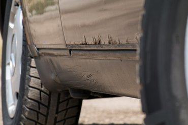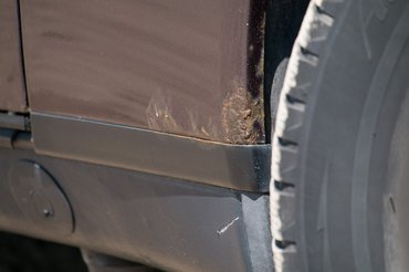 Végre itt a kamionparkoló, fotózunk. Dögletes a hőség, de ahogy az autóra nézek, még a kevés poros nyál is száraz ciánná keseredik a számban. Persze, jól ismerem a korai, vizes bázisú festékkel fújt Mercedesek pokoli korróziós hajlamát, de erre a látványra nem tud elég vastag kérget növeszteni az ember lelke, egy akkori Mercedes igazi lovagiétterem-zabaorgia a rozsda számára. A kereskedésben, a többiekkel beszélgetve csak röpke pillantást vetettem a kocsi felületének 97 százalékán elterülő, kissé már lemattult, de erősen gyárinak tűnő, metál-lilásszürke fényezésre, s egész jónak tűnt, ám a derékvonal alatt elterülő csipaszőnyeget figyelmen kívül hagytam.