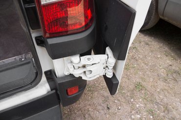 A bőségesen páncélozott tartályokat alul viseli, és még a hátsó tengely mögé is jutott, így a pótkerék a raktérbe költözött. Amikor megláttam a két lelógó puttonyt, aggódtam, de a rögös hajógyári utakon és a fesztiváli hepehupákon se sikerült odacsapni semmihez. Ezek a tartályok sajnos jó nehezek, így az azonos méretű dízel verzióhoz képest jó 300 kg-mal kevesebbet tudunk szállítani, jelen esetben 1345 kg helyett 1029 kg-ot.