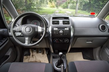Ha sikerül bejutni az autóba (a központi zár távirányítója nehezen akarja az igazságot, típushiba), a jól ismert, Swift ihlette beltér fogad bennünket. A GLX AC felszereltségben már állítható a kormány, van klíma és a rádió lejátssza az MP3-at - persze csak CD-ről. Az SX4 bele egyébként szépen öregszik, 172 ezer kilométer után gyakorlatilag csak a kormányon látszik, hogy nyolc éve használják. Ránézni továbbra is kellemes, hozzáérni már kevésbé jó az anyagokhoz. Továbbra is vicces a kormányon lévő hangerőszabályozó, ami minden egyes gombnyomáskor éktelenül csippan egyet. Menet közben sem kezd el zörögni semmi, de ez gyakorlatilag mindegy is, hiszen az SX4 új korában sem volt egy csendes autó. A kapható leggyengébb, 1,5-ös, 99 lóerős motor kifejezetten bántó hangú, de legalább ezt a közel fapados modellt tűrhetően viszi, hiszen alig nehezebb 1,1 tonnánál.