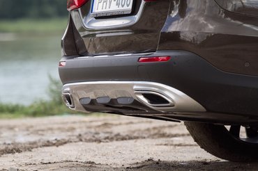 A dizájnt amúgy szét tudja zilálni a körbeműanyagozás, szebb ez az autó sem lett. Mert az E Merci tervezőinek van talán a legnehezebb dolga a világon: úgy kell megtervezniük az autót, hogy az igényes vevő akkor is rákívánjon, ha a szalonba menet elment három olyan taxidroszt mellett, ahol csak ilyen autó állt. És működik: egy-egy komolyabban felextrázott E osztály tulajdonképpen másik autó, egy ilyen All Terrain pedig garantáltan emlékezetes. Viszont ezt nem az esztétikum, hanem a szokatlanság teszi, a fényezetlen elemek és a kazánezüst betétek nehezen egyeztethetőek össze a kimért vonalakkal. És a kamu kipufogóvég itt is ugyanolyan gáz, mint a nem terepes változatnál.
