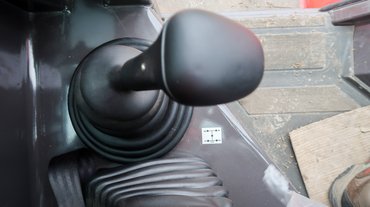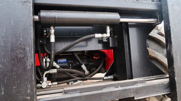Az M30-4-en első pillantásra látszik, hogy nem ijed meg a durva munkától, mostoha körülményektől. Masszív, noha csak három és félszer két méteres, öt és fél tonna anyagot sűrítettek bele. Ahogy körüljárva gusztálgatom, észrevehető, hogy ismerték a gyakorlati életet a tervezői: a hidraulikus munkahengerek védetten helyezkednek el, mindenfelé okosító feliratok láthatók.