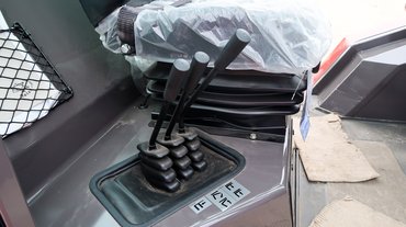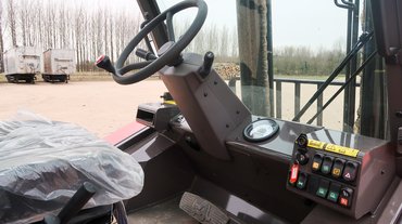 Jobb kézre három kar áll, egyik a villát emeli-süllyeszti, a másik az oszlopot dönti előre-hátra, a harmadik a villákat mozgatja oldalirányban. A kulcsos gyújtáskapcsoló és a néhány gomb akár egy autóban is lehetne. A műszeren nincs sok nézegetni való, a 3,4 literes, 75 lóerős Perkins dízelmotor fordulatszámát és az üzemórák számát mutatja. Mindez eléggé fura világnak tűnhet, de mindenkit biztosíthatok, hogy pár perc gyakorlás után otthonosan érezné magát.