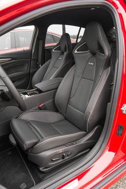 Vagyis az Insignia GSI-nél nem a legszélsőségesebb menést vették célba, hanem a feelinget és a külsőségeket. Jól néz ki, főleg az ötajtós, ami elég markáns kacsafarkot kapott hátulra, hogy legyen elég leszorítóerő, de a szép nagy felnik mögül kikandikáló, négydugattyús Brembo féknyergek, meg az új első lökhárító is jelzi, hogy picivel több az átlagnál. A GSI-ség az utastérben is látszik, a jellegzetes Darth Vader-kontúrú (ők kobrát mondtak) első üléstámlák, a klassz kormány, nagy navi, miegyéb, És persze GSI-logók mindenhol, üléstől küszöbig.
