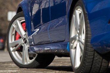 Az alublokk előnye, hogy könnyebb a vasnál, egész pontosan 26 kilóval. Ha pedig 26 kilót elveszünk egy punnyadt, polgári használatra tervezett, majd onnan szinte versenyautóvá átépített, de ettől még mindig erősen orrnehéz kocsi elejéből, az jót tesz velünk, ha kanyarhoz érünk. Ennek az RS3-asnak 57,7/42,3 százalékos a tömegeloszlása az első és a hátsó tengelyek között, ami a hajszálpontosan 50/50 százalékra titrált, igazán sportos és kezes autók világában még mindig inkább a fanyelű kalapácshoz teszi hasonlóvá, de mindenképpen ott a fejlődés. Talán ezt felismerve az audisok tovább tekerték az első-hátsó hangolás potmétert egy fura trükkel: ezen az autón elöl vannak szélesebb gumik.