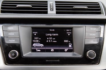 2015-ös autóról beszélünk, amelyben már nyomokban felfedezhető a mai trend: segíteni akarja a vezetőt, vagyis van benne automatikus vészfékező, start-stop rendszer és hasonlók, fűthető tükrök, sőt érintőképenyős multimédia is, bár a képernyője kicsi, a pixelek meg nagyok rajta – de van. És egész jól kezelhető, igaz, magyarul nem tud. A felszereltség ezen az Ambition szinten jó közepes, van klíma, de csak manuális, ABS, ESP alap, tempomat és erőteljes sötétítés az üvegen a hátsó szekcióban. Viszont a hátsó ablak már kurblis, és a rádiónak csak elöl vannak hangszórói. Biztonság szempontjából a Fabia III. egészen kiváló, 2014-ben a kategória legjobbjaként 5 csillagot kapott az Euro NCAP töréstesztjén.